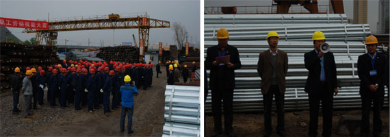 为落实集团总公司《2014年安全生产工作要点》,丰富物产配送公司基层班组建设,促进一线职工综合技能水平提升,以《吊装作业规范手势》为标准,检验公司一线司吊作业人员执行国家规范手势、司吊作业操作规程的实际效果,保证全年安全控制目标的实现。物产配送公司在前期宣传动员、学习培训、实战演练的基础上,于2014年5月17日上午,举行职工劳动技能比武大赛。集团总公司党委书记白家林、集团党群工作部部长赵宗青、安全环保部干事刘军莅临现场指导。