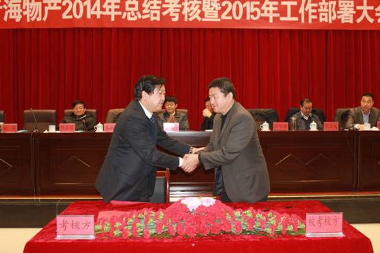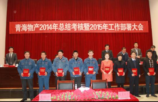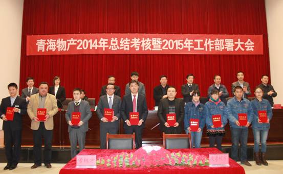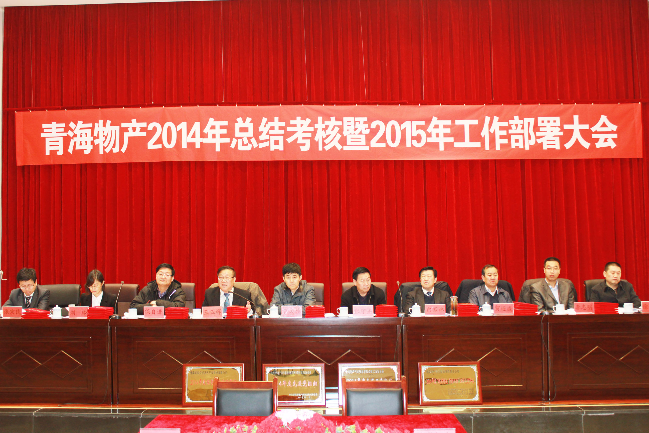 2015年1月31日,青海伟德国际1946bv官网总公司召开"青海物产经营发展2014年总结考核暨2015年工作部署大会"。 会议由集团纪委书记李志明主持,省国资委党委委员、副主任崔文德,省国资委第二监事会主席张守杰、省国资委考核与分配处处长侯自进、省国资委党群工作处调研员贺连成、省国资委第二监事会专职监事唐刚、省国资委纪委干部李世晶莅临大会,集团领导、所属各公司班子成员、受表彰人员、离退休人员、总部员工参加了会议。