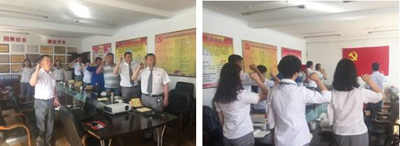 2016年6月30日,青海物产汽贸公司党支部组织全体党员庆"七一"上党课。党课开始之前,全体党员面向党旗重温了《入党誓词》。"我志愿加入中国共产党,拥护党的纲领,遵守党的章程,履行党员义务,执行党的决定,严守党的纪律,保守党的秘密,对党忠诚,积极工作,为共产主义奋斗终身,随时准备为党和人民牺牲一切!永不叛党"。