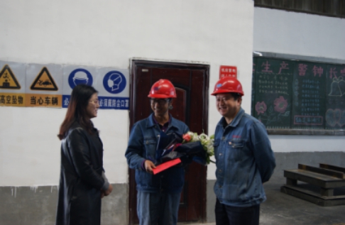 "五一"前夕大通县委、县总工会领导与公司党委、公司领导、党群部工作人员到车间,探望慰问了战斗在一线的获得省国资委、集团公司系统的优秀共产党员和在今年"五一"前夕被大通县总工会评为"大通工匠"的王兆明同志,县委领导为他发放了奖金,致以节日祝贺,并鼓励大家继续发扬劳模精神和"工匠精神",让平凡的普通劳动者心中有国家、有人民、有企业、有信念、有信仰、有梦想,奋发有为,为企业发展做出更大贡献。