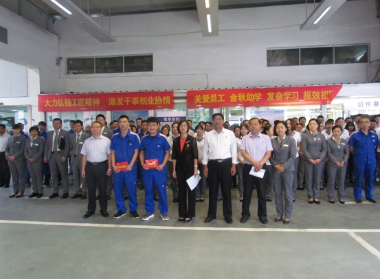 首先,刘玲副总经理代表集团党委宣读集团党委、集团公司和集团团委《关于对参加全省青年职工职业技能大赛获奖选手奖励的通知》,并向在大赛决赛中荣获一等奖、三等奖的公司售后服务部职工石学林、张怀军现场颁发了5000元、3000元奖金。