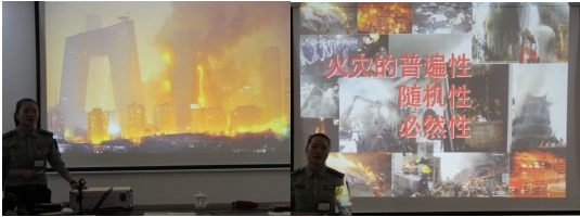 张教官结合国内近年来发生的各类典型火灾案例,对消防火灾的应急预防、常见的火灾种类、消防器材的正确使用方法、自救逃生的基本常识进行了深入浅出的讲解,演示干粉灭火器、强光手电筒、防烟面具等各类消防器材的使用发法,传授如何在火灾最初的五分钟"黄金救援时间"内进行扑救、人员疏散及火场自救逃生技巧。