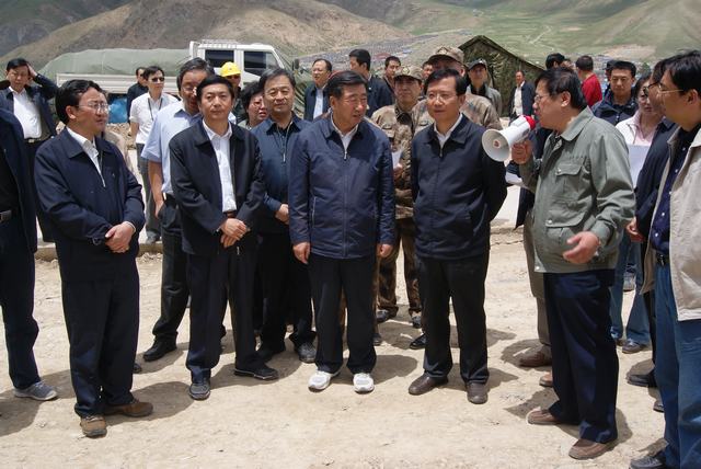 6月19日,中共中央政治局委员、国务院副总理、国务院抗震救灾总指挥部总指挥回良玉率领相关部委领导,在青海省委书记强卫、省长骆惠宁、副省长马顺青的陪同下,来到正在昼夜施工建设的青海物产玉树建材物流集散中心,视察灾后重建物资储备情况和集散中心工程建设情况。集团总经理王玉辉向中央领导和省领导详细汇报了建材物流集散中心建设规模和钢材、水泥、木材三大类物资收储情况。同时表示,青海伟德国际1946bv官网总公司将一如既往,全力以赴支援玉树灾后重建,与各路建设大军一道,为建设美好绿色新玉树贡献力量。听完汇报,回良玉副总理非常高兴,并做出重要指示,要做好统筹组织建材物资的采购和调运工作,努力保障供应,确保质量,降低成本。回良玉副总理及省领导与集团领导、工作人员合影留念。
