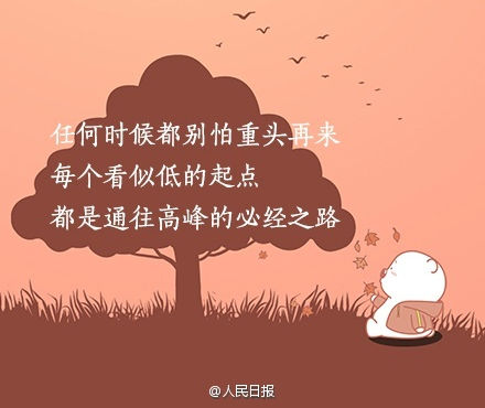 任何时候都别怕重来,每个看似低的起点,都是通往高峰的必经之路。你不努力,谁又能替你