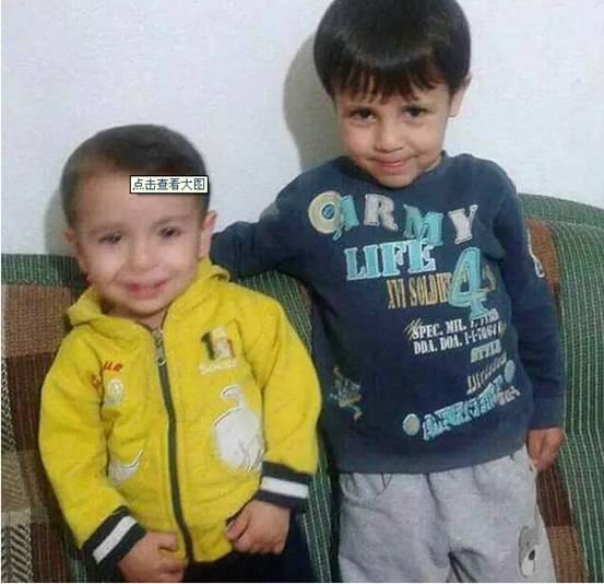 3岁的Aylan(左)和他5岁哥哥Galip(右)的合影