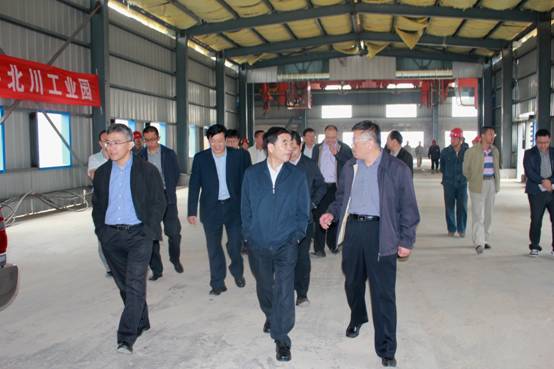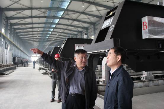 图一:骆副省长(中)一行在集团王总(右一)等领导的陪同下实地来到生产车间视察