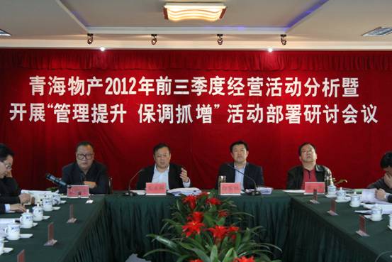 根据省国资委的安排部署,要通过开展"管理提升、保调抓增"活动,奋楫图治多措并举,三大板块转型升级,四大园区卓越发展,并要求集团上下围绕 "管理提升、保调抓增"活动的开展,激发企业内生动力,解决企业发展活力,一是要按照活动《实施方案》,认真组织开展好挖潜增效、降本压费;管控风险、管理提升;关爱生命、安全生产;推进项目、增强后劲四项活动的主要内容。二是要加快建立和完善管理提升的"六大体系":即发展战略体系、科学组织体系、运作流程体系、绩效考核体系、效能监察体系、信息支持体系;促进基础管理明显加强;管控能力明显提升;管理创新机制完善;综合绩效明显改善。三是要统一思想,创新观念,党政工团齐抓共管,全员参与,有效推动,并加强督导,务求实效;四是集思广义,凝聚智慧达成共识,修编和实施好青海物产《"十二五"后三年发展规划》,形成经营发展的纲领性文件,为实现青海物产跨越发展再创辉煌。